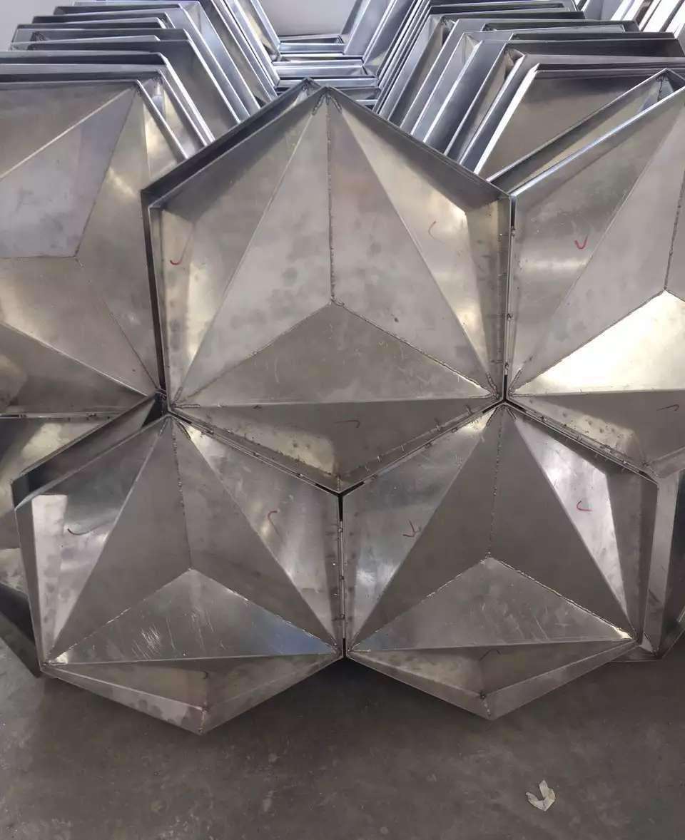 随着建筑外形风格的多样化,双曲面板铝单板已越来越受到业主和幕墙设计师的青睐。由于其加工难度大,能生产双曲面板的厂家又很少,很多工程只能放弃原有设计方案,导致幕墙的整体效果难以准确表达出设计师的设计理念。本企业大胆探索,自主创新,利用蒙皮拉伸技术和三维建模原理,解决了铝单板行业的难点技术一双曲面铝单板的生产、设谓艺,成为国内为数不多的真正能批量生产双曲面铝单板和复杂异型板的企业之一,为设计师提供了更为广阔的想象和设计空间。版面效果比常见的通过分割焊接产生的双曲板平整度好,安装效果比所谓的“以直代曲”等假双曲的弧线圆滑,充分展示了双曲板在金属幕墙上无可代替的独特魅力。