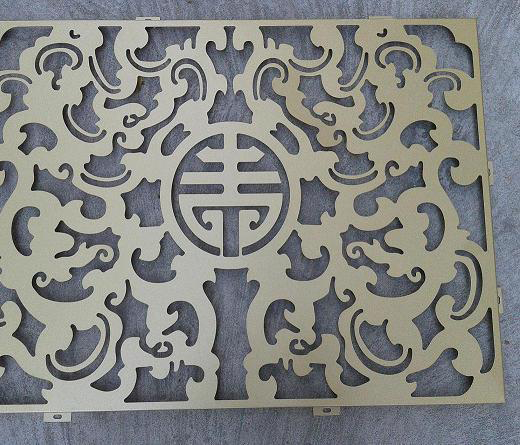 艺术雕刻铝板凭着先进的生产技术设备,追求精致完美,力求成为个性化和艺术化的新一代主流产品。环保无毒,完全防火;样化,图案可根据个人风格定做,尽显个性化;表面雕刻立体感强;抗静电不吸尘且容易清洗等。且安装简单、易装易拆、维修方骨按水平线吊装好,把板扣上去即可,每块板都是独立的,铝板固定于龙骨扣齿上并可以单独拆卸,保养筒便。